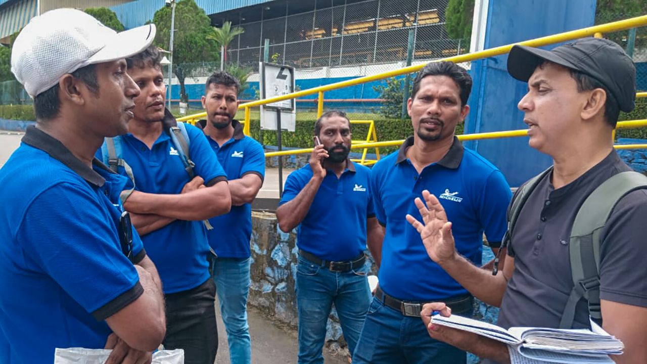 மிதிகமவில் உள்ள மிச்செலின் தொழிற்சாலை தொழிலாளர்கள், சோசலிச சமத்துவக் கட்சியின் (இலங்கை) முன்னணி உறுப்பினரான அருண நிஷாந்த மலலகமவை, உரை ஒன்றை நிகழ்த்துவதற்காக, நேற்று காலை, அழைத்திருந்தனர். மிச்செலின் பன்னாட்டு நிறுவனம் தனது தொழிற்சாலையை இந்திய சியட் நிறுவனத்திற்கு விற்ற பின்னர், அவர்கள் தங்கள் தொழில்களைப் பாதுகாக்கும் போராட்டத்தில் ஈடுபட்டுள்ளனர்.